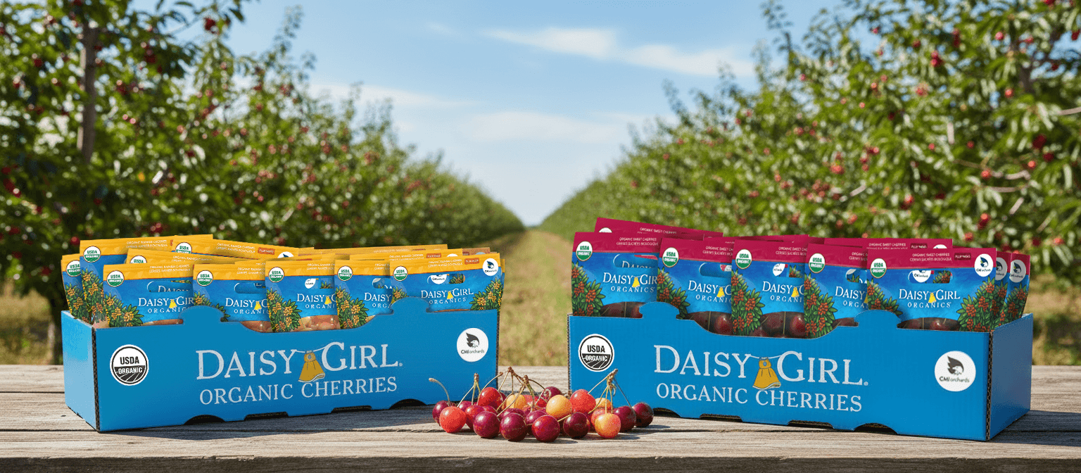 Shoppers trust Daisy Girl Organics® cherries. Our pouch bags are a fan favorite. The iconic blue branding means shoppers can easily find their favorite organic cherries in a brand they trust.
